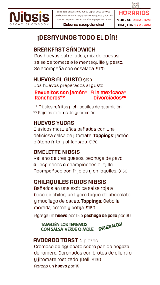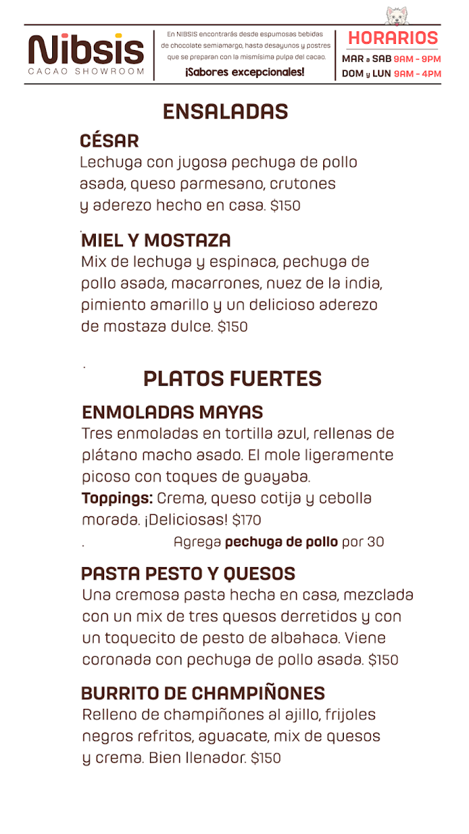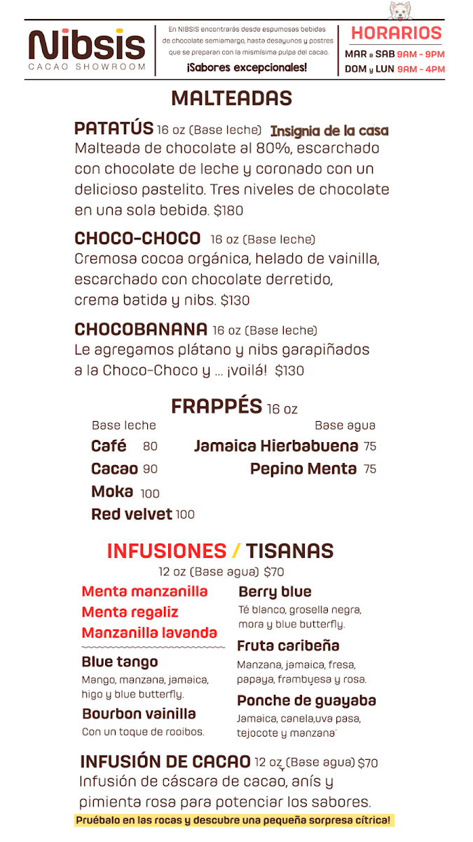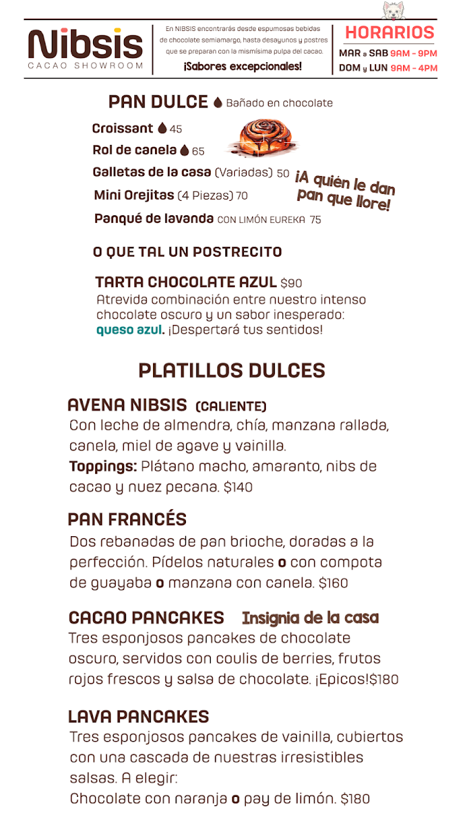 Nibsis specializes in an array of mouthwatering offerings that elevate cacao to an art form. Their menu features a splendid variety of options, each more enticing than the last. Savor the Tarta De Chocolate Con Queso Azul, an indulgent personal tart with rich chocolate and a sophisticated blue cheese twist for just MX$130.00. For those with a flair for breakfast or brunch, the Pancakes De Cacao are a must-try – four fluffy pancakes infused with cacao, served with a choice of toppings and crunchy nibs for MX$190.00 that promises a blissful start to your day.